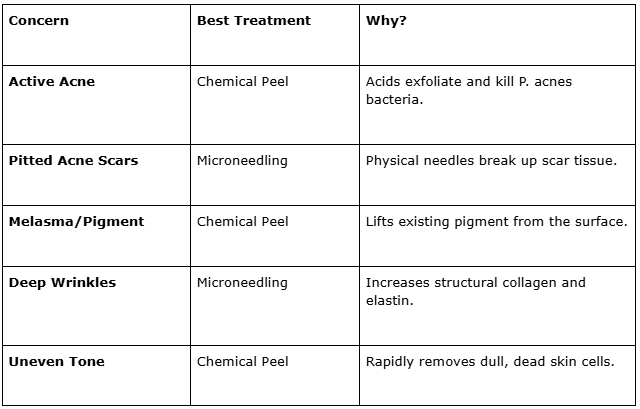 Chemical Peel vs. Microneedling for Acne, Scars, and Pigmentation